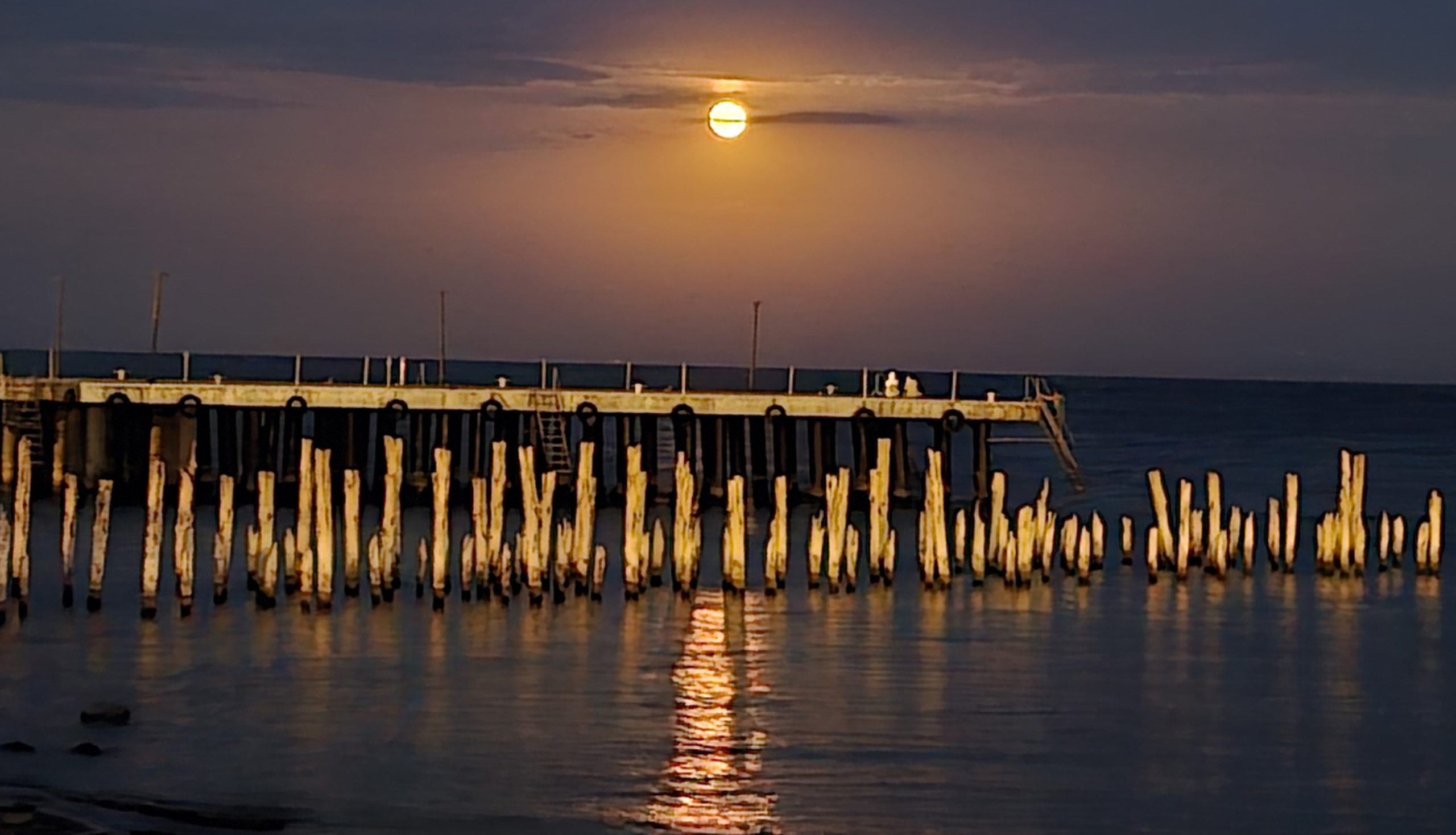 Bitlis’in Ahlat ilçesinde iskele üzerinde beliren dolunay, Van Gölü üzerinde oluşturduğu yakamozla izleyenlere adeta görsel bir şölen yaşattı. Gökyüzünde tüm ihtişamıyla yükselen dolunay, havanın parçalı bulutlu olması nedeniyle kimi zaman bulutların içinde kaybolarak tekrardan belirdi.