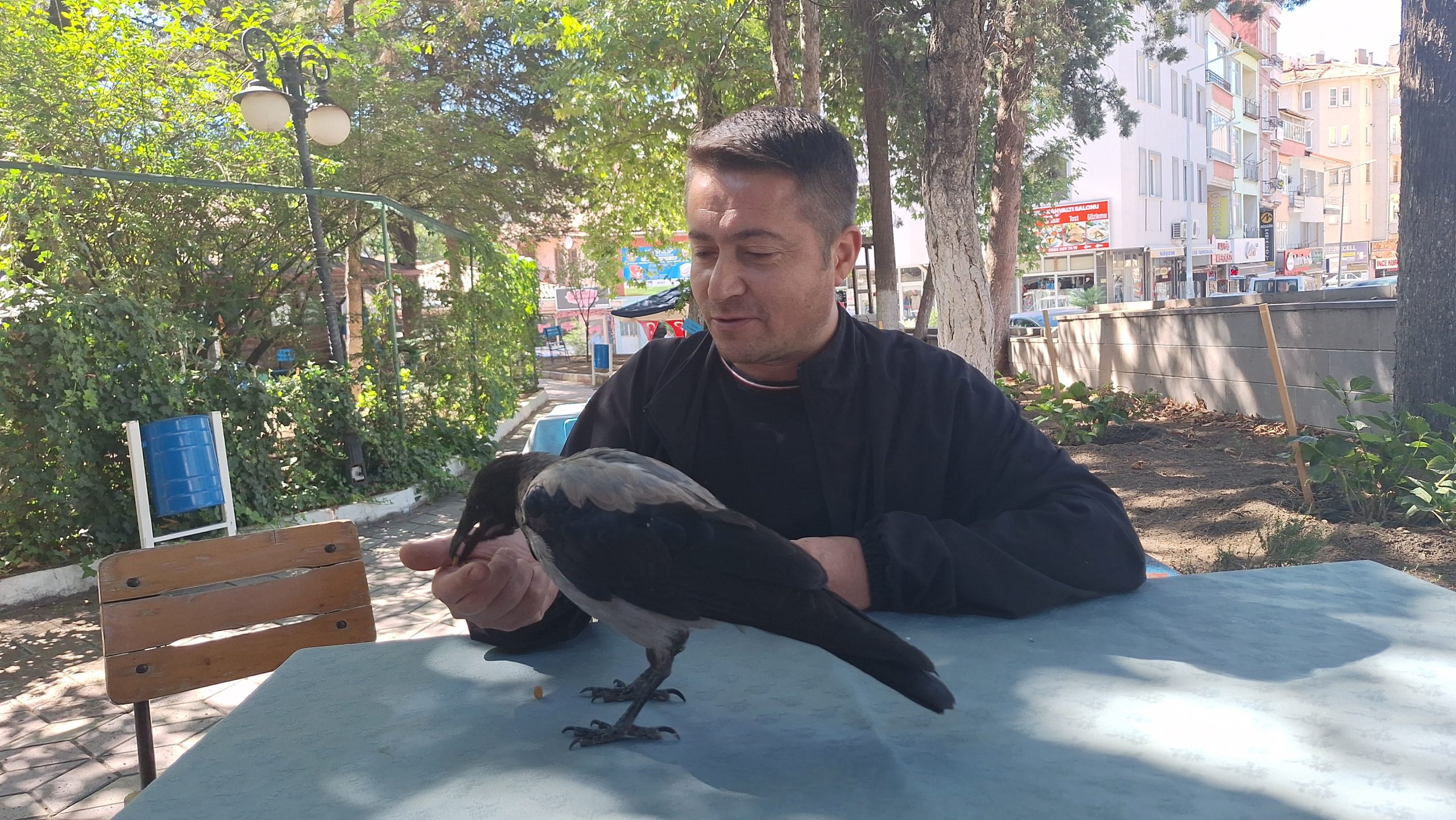 Çorum’un İskilip ilçesinde bulunan şehir parkında yuvasından düşen ve parktaki işletme sahibinin köpeklerden kurtardığı karga,…