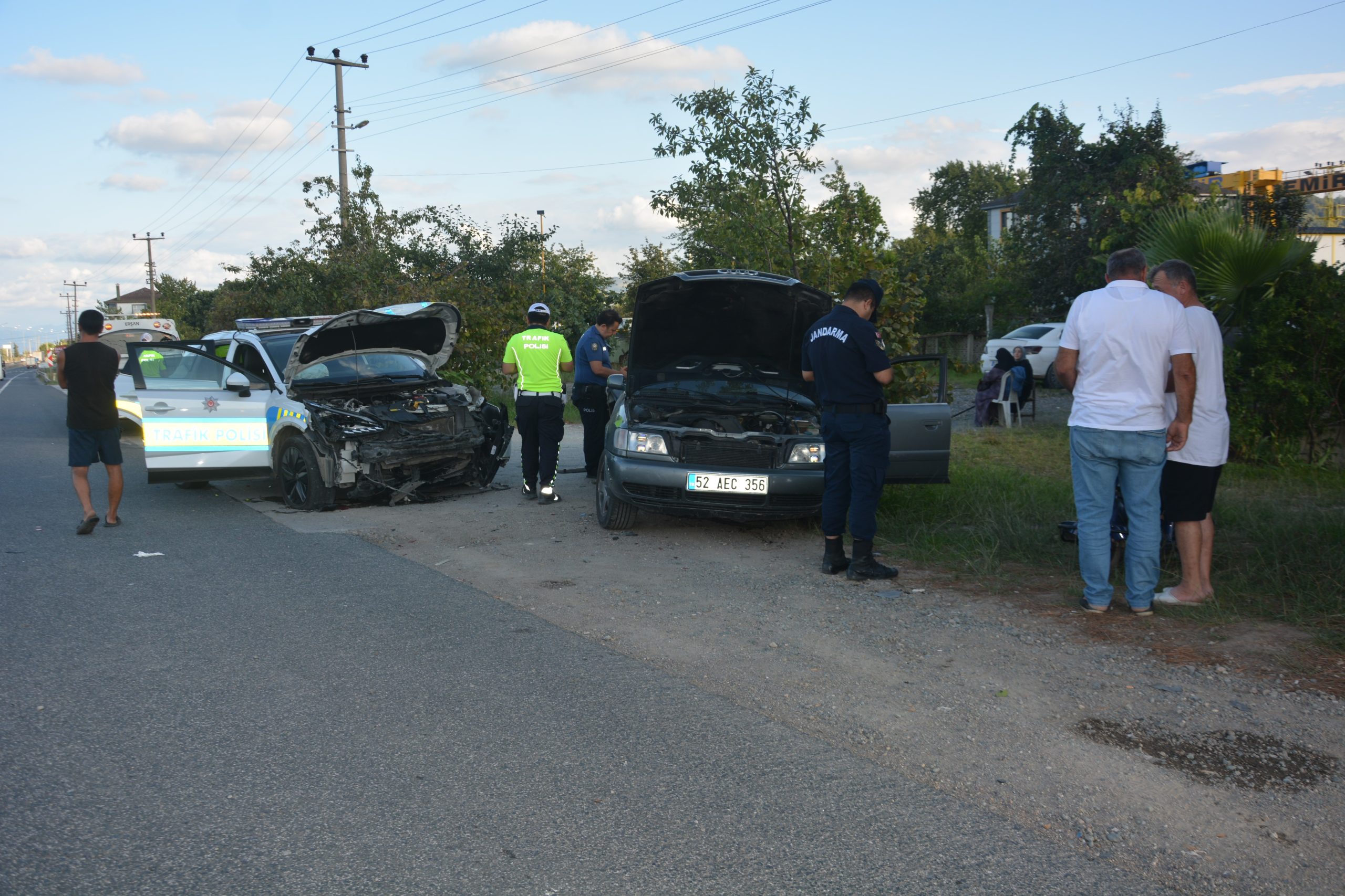 Ordu'nun Ünye ilçesinde düğün konvoyunda seyreden otomobilin uygulama yapan polis aracına çarptığı kazada, 1 polis…