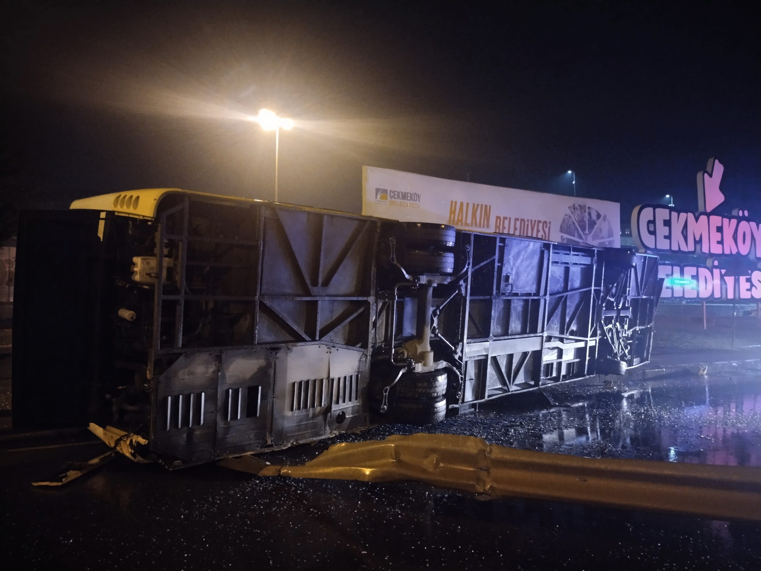 Çekmeköy’de seyir halindeki özel halk otobüsü şoförünün kontrolünden çıkarak bariyerlere çarptı, ardından yan yola savruldu. Kazada can kaybı veya yaralanma olmadığı öğrenildi.