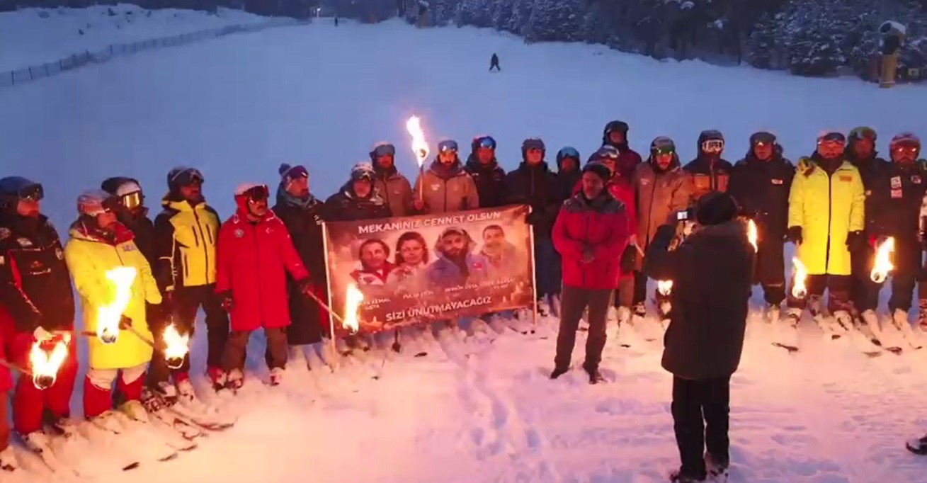 Sarıkamışlı kayakçılar, ellerinde meşalelerle pistlerden aşağıya inerek Bursa’da hayatını kaybeden arkadaşlarını andı, yapılan açıklamaların ardından arkadaşları için dua etti.