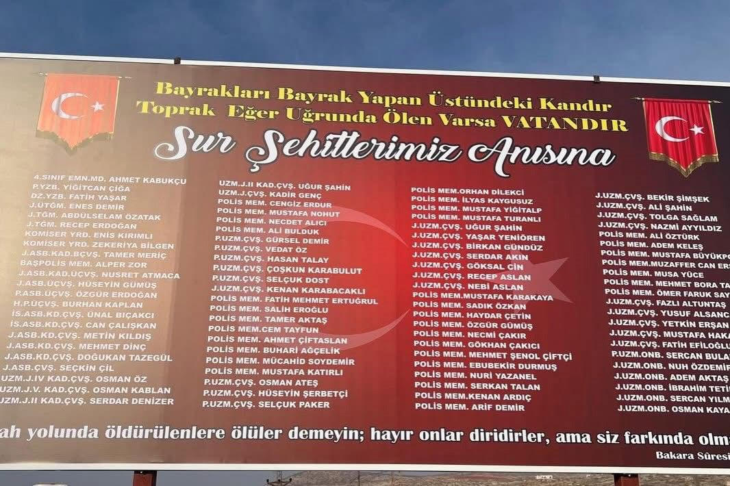 Sur Kaymakamı Yusuf Melikşah Aydın, etkinliğe katkı sunan tüm paydaşlara teşekkür ederek, “Tarih, hatalardan ders almak için vardır. Milletimiz ise o tarihi yazmakla meşhurdur. Sur’da hainlere ağır bir ders vererek Türkiye Cumhuriyeti’nin parçalanamayacağını tekrar hatırlatan kahramanlarımız, yazdığımız şanlı tarihlerin en yakın örneği. İşte o şehitlerimizin adını yaşatmak, hatıralarını yeşertmek ve gelecek nesillere bu bilinci aktarmak için toprağa umut ektik. Ruhları şad olsun, mekânları cennet olsun. Bu vatan var oldukça, aziz şehitlerimiz asla unutulmayacak” dedi.