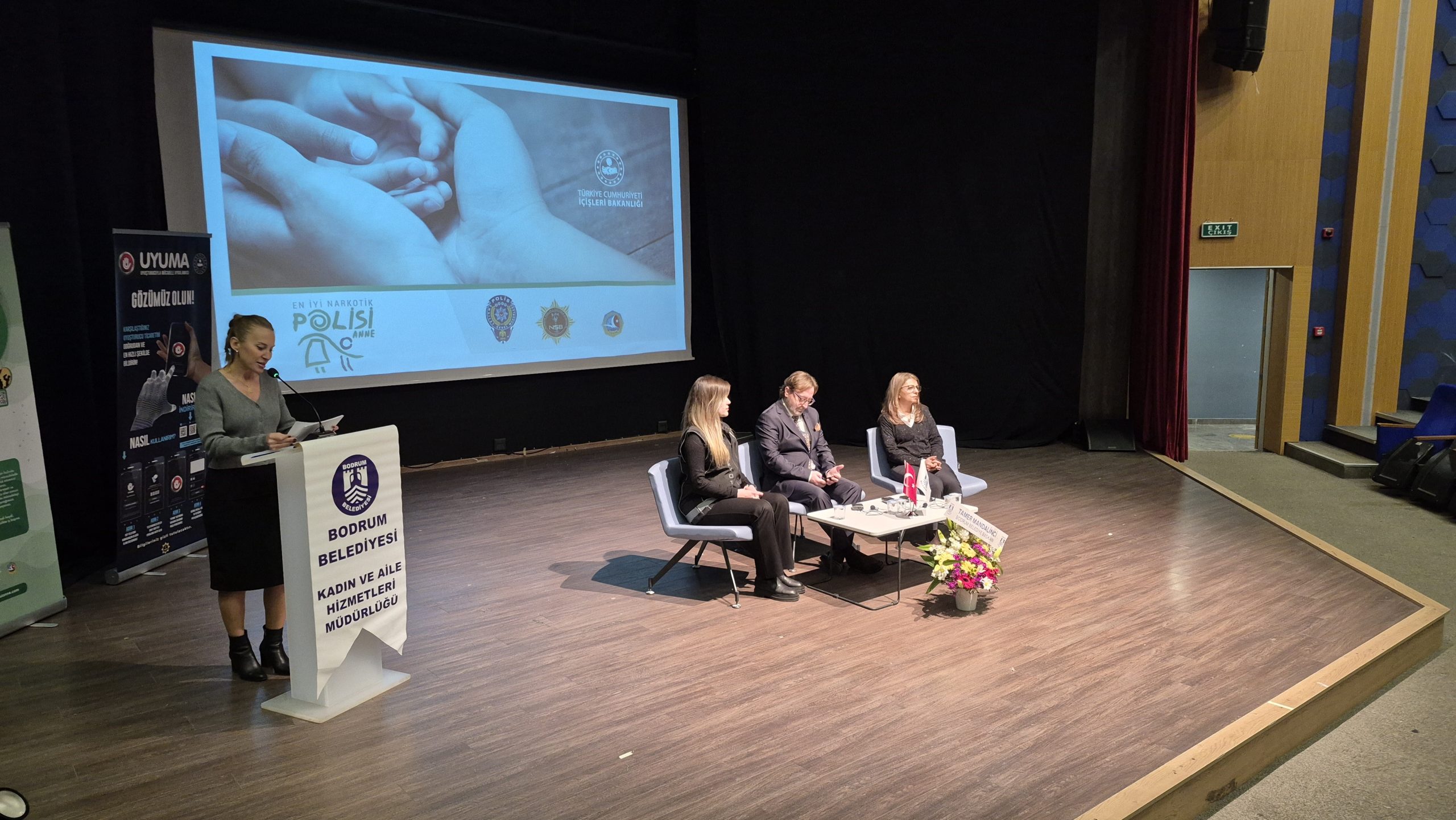 Nurol Kültür Merkezi’nde Bodrum Belediyesi Kadın ve Aile Hizmetleri Müdürlüğünün organizasyonuyla Bodrum İlçe Emniyet Müdürlüğü Narkotik Suçlarla Mücadele Büro Amirliği ve Muğla Barosu Bodrum İlçe Temsilciliğinin iş birliğiyle gerçekleştirilen etkinliğe Bodrum Belediye Başkan Yardımcısı Tanju Aksu ile konuya ilgi duyan vatandaşlar katıldı.