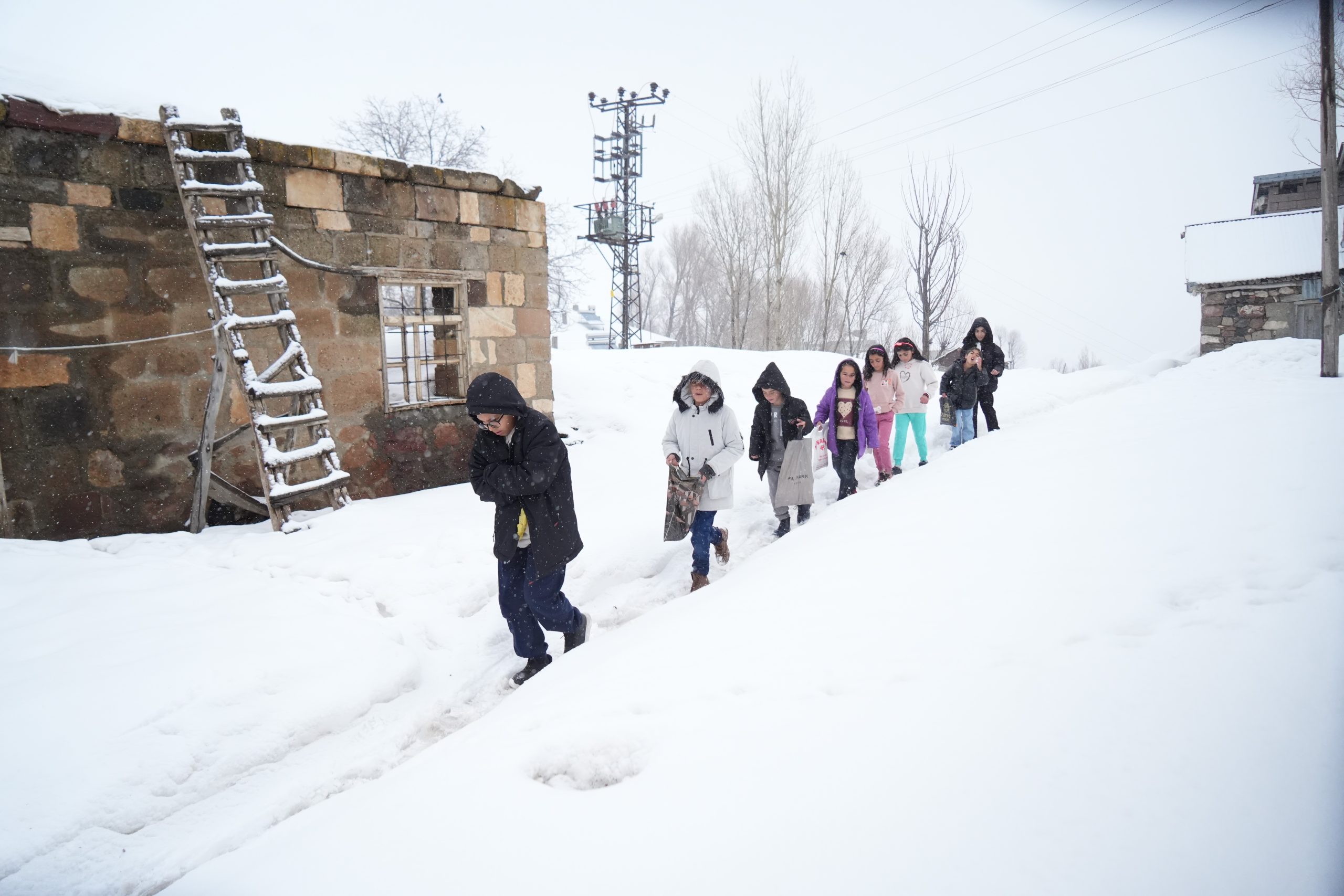 Muş’un Yukarı Yongalı köyünde çocuklar, metrelerce kar üzerinde kapı kapı dolaşarak şeker topladı. Soğuk havaya rağmen bayram coşkusu köyde doyasıya yaşandı.