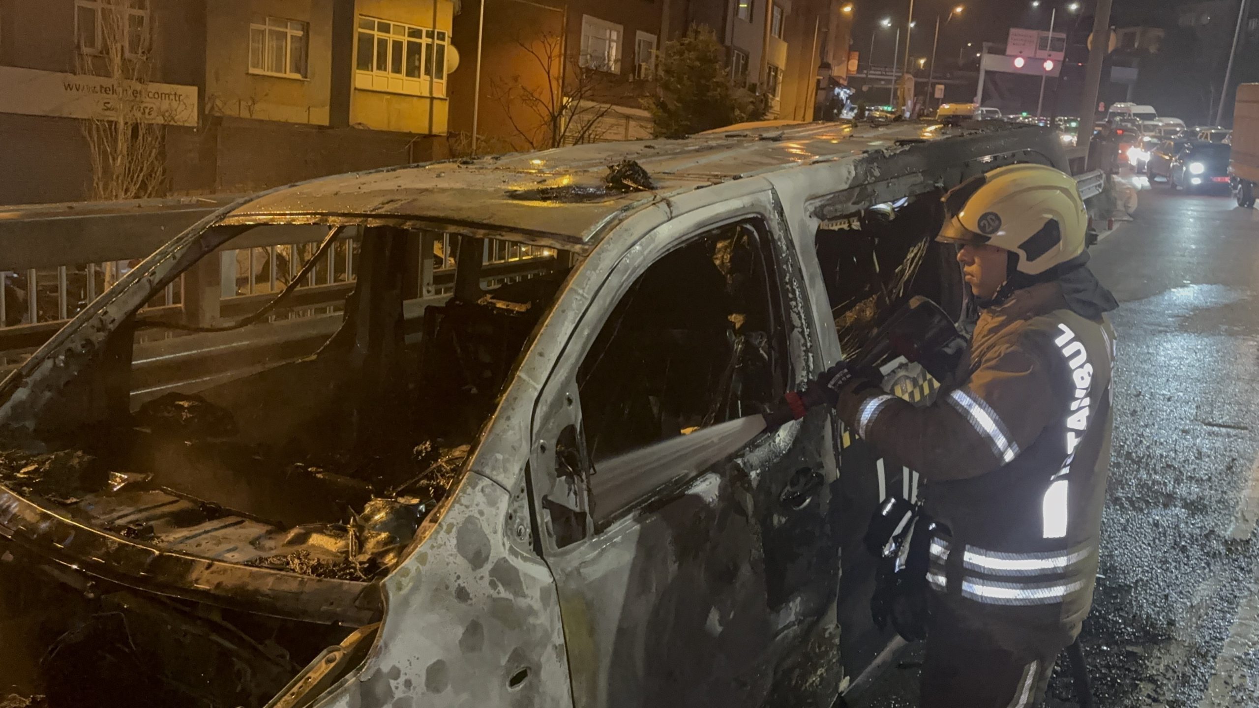 Kağıthane Okmeydanı'nda seyir halindeki bir ticari takside yangın çıktı. Durumu fark eden sürücü aracı yol…