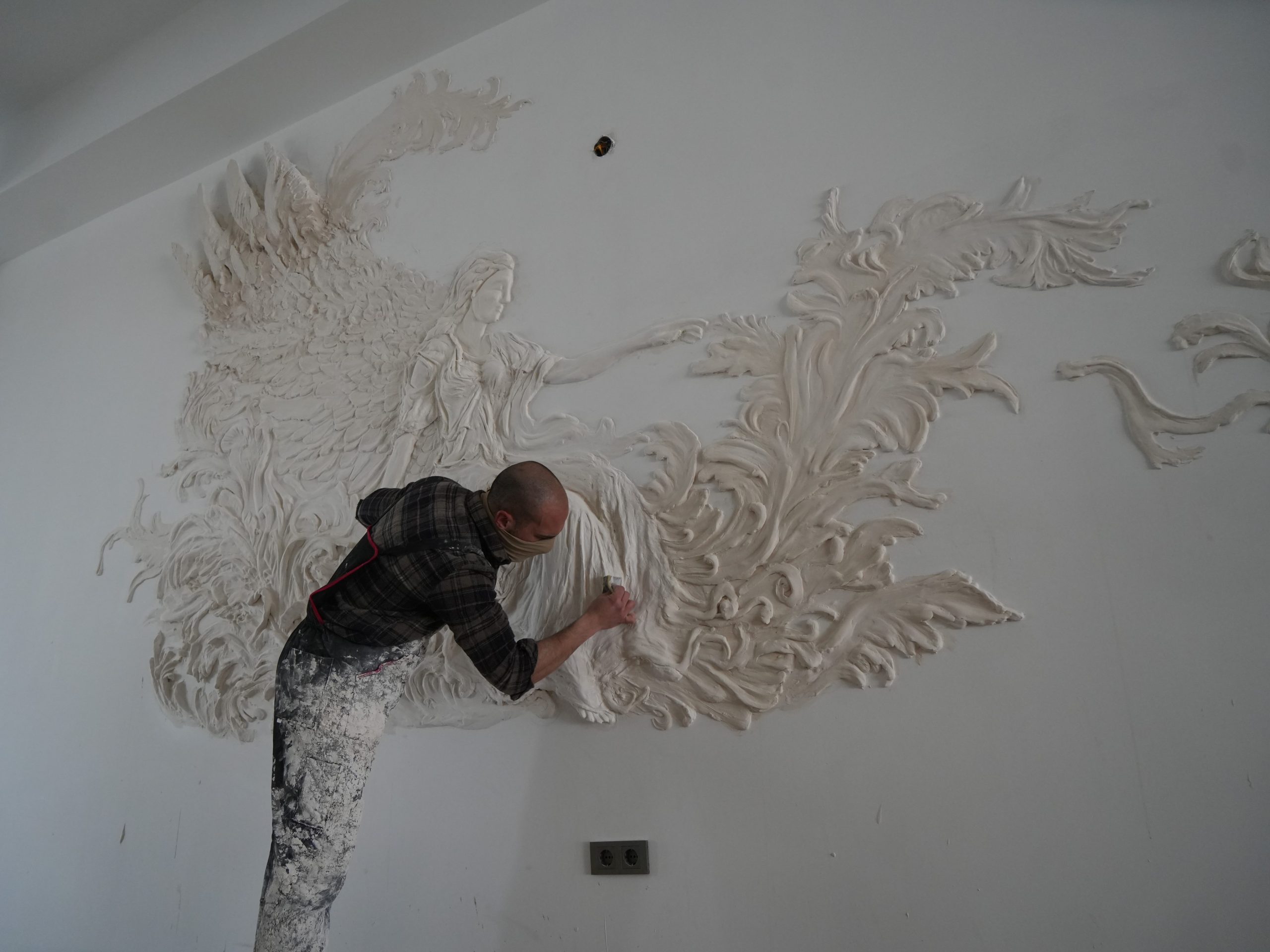 Genç sanatçı alçıyla duvarları resim tablosuna dönüştürüyor